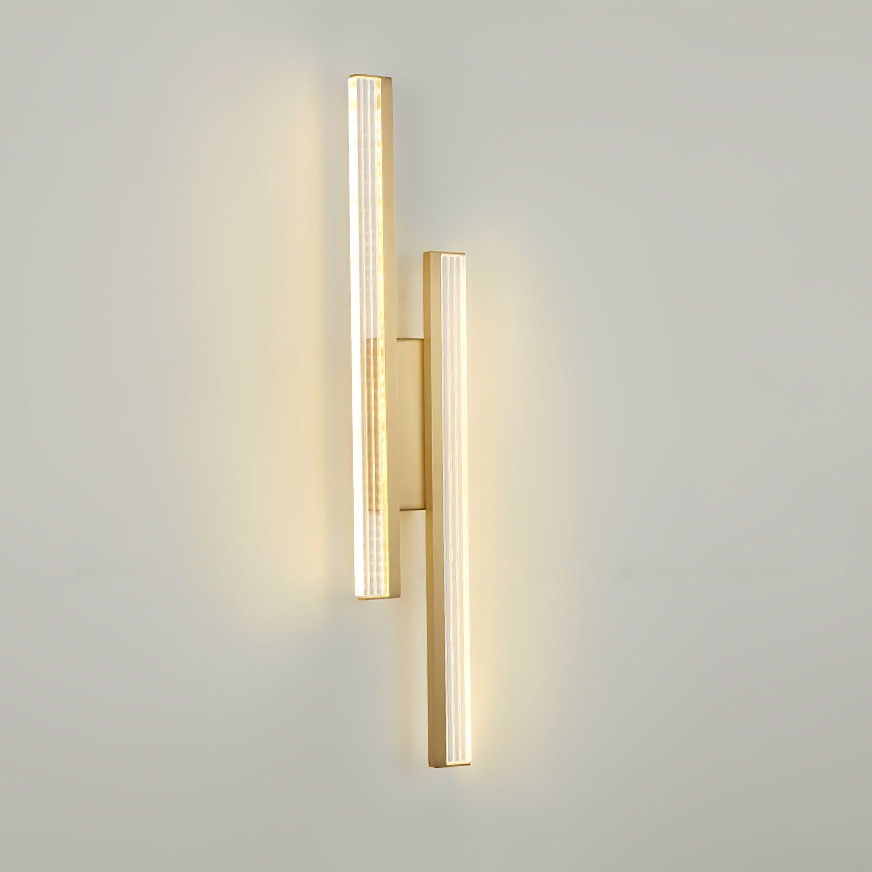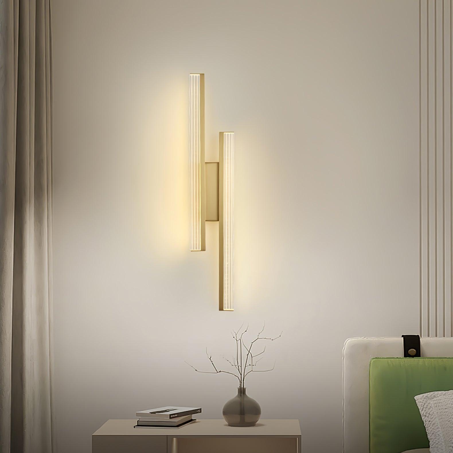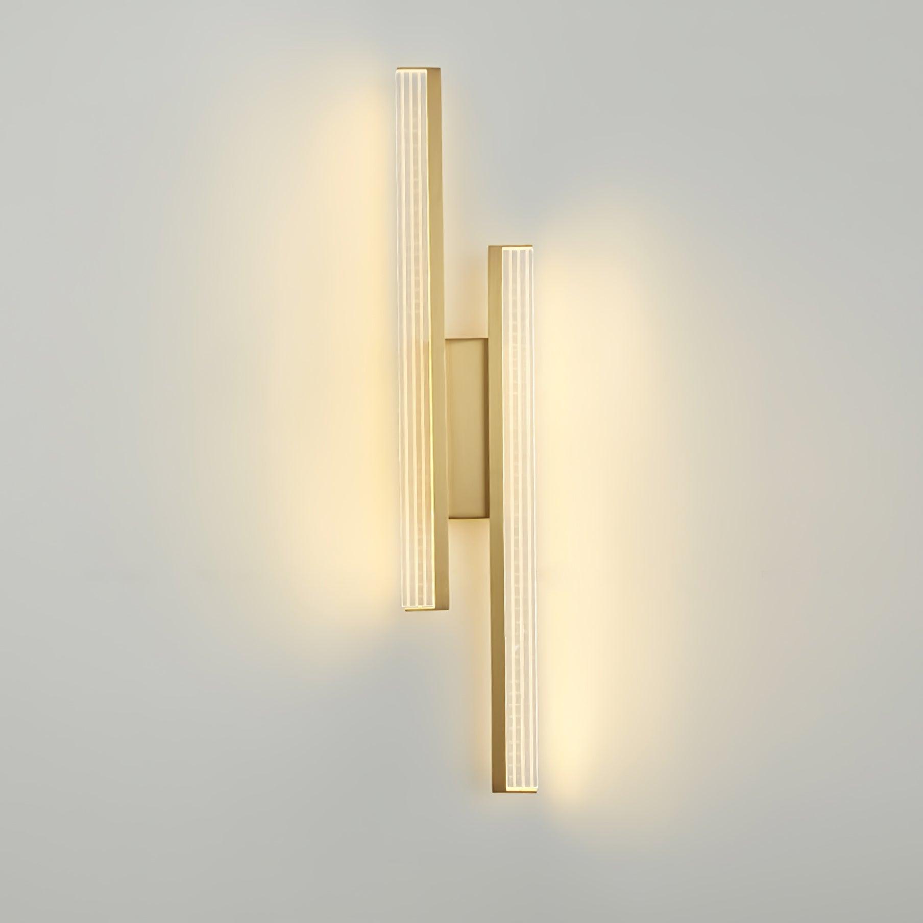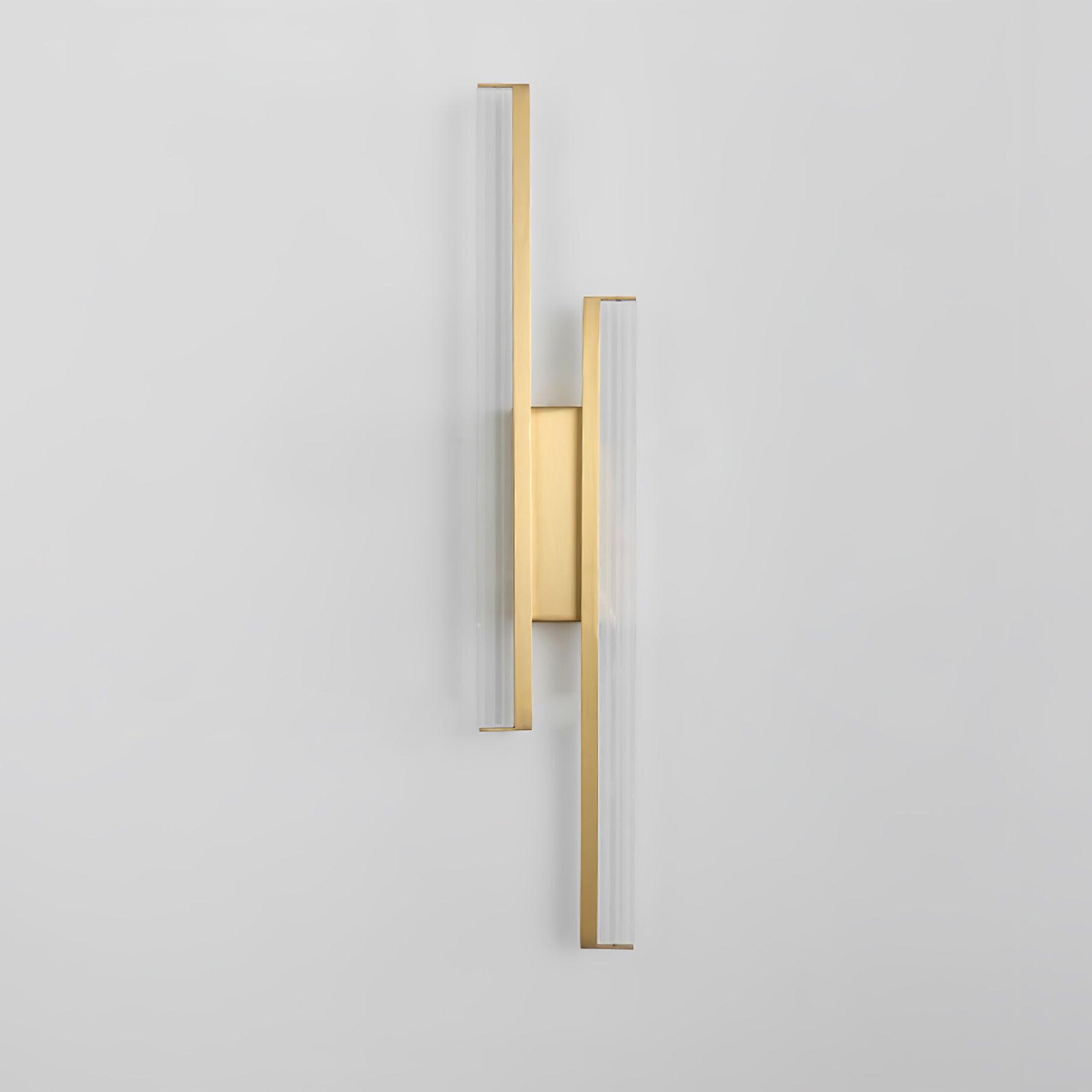 Stylish chic look 2 lights wall sconce. Structured 2 long pipes that were symmetrically connected and distributed from the 2 sides of the rectangle base. Acrylic tubes are just in the center of the lamp. Cool designs make it not only a lamp but as well as a decor piece when light is not illuminated design, makes it not only a lamp but also an ornament when there is no light.