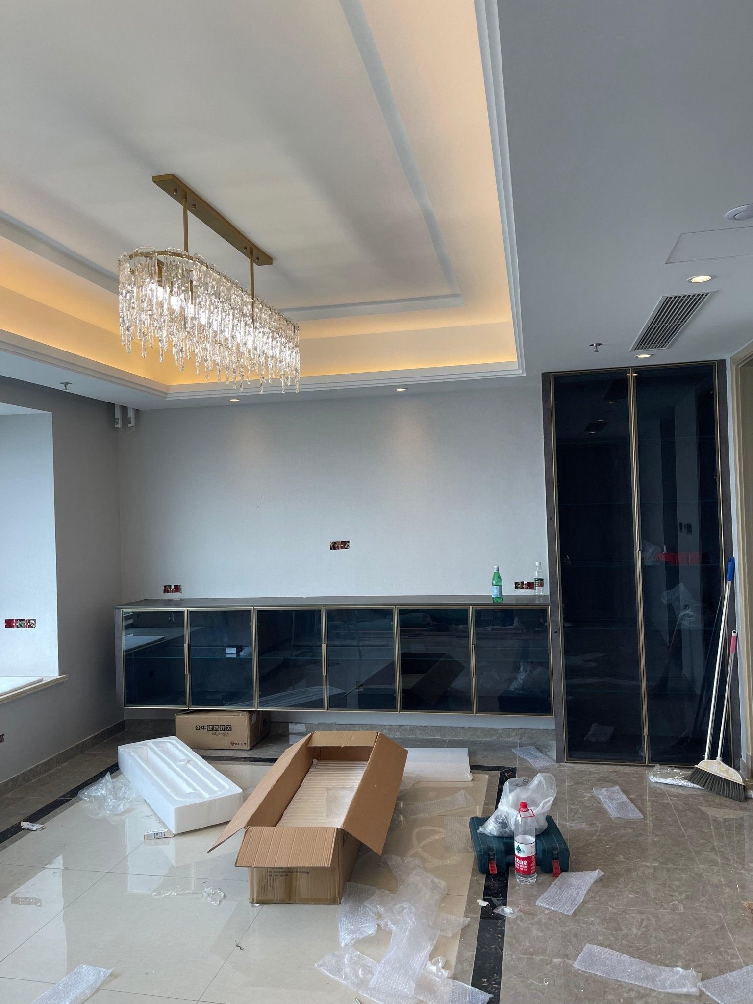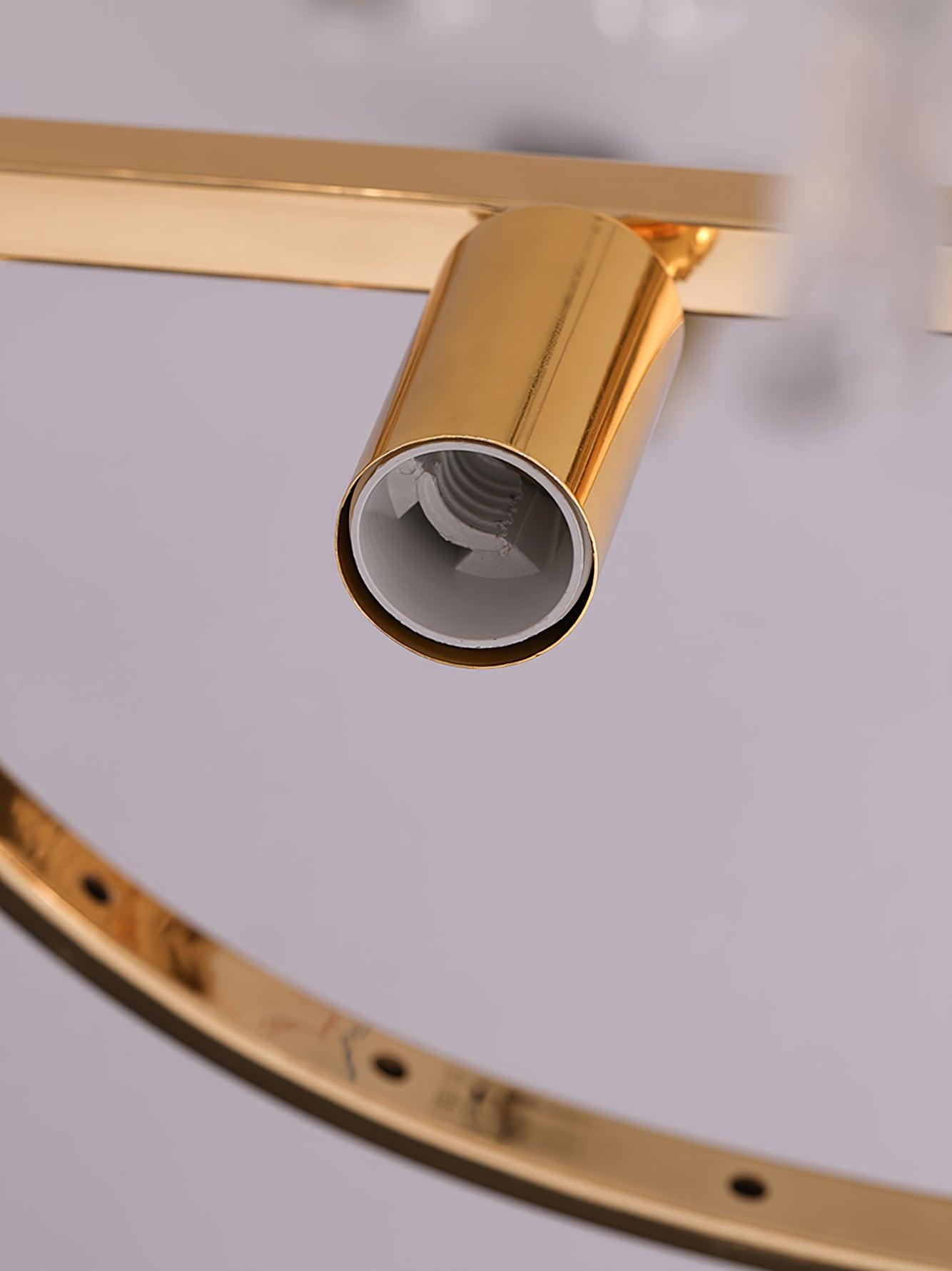 For innovative elegance and simple sophistication in a lighting fixture, this Rectangular Icicle Glass Chandelier carries as much class as any chandelier, but with a contemporary influence that enhances its style and versatility. Showcasing an array of exquisite crystals decorated around a gold, ring-shaped frame,Once on, hidden LED lights radiate through the crystals for a stunning, shimmering ambiance. A low-profile piece that never fails to create an appetizing sparkle in any living room, dining area, bedroom or office space.
